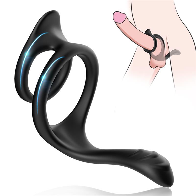 Anillo doble para el pene extra flexible que incluye una parte extra para la estimulación perianal.